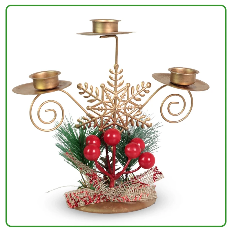Prepara tu mesa para la celebración con un punto de luz que ilumina el ambiente. Este candelabro decorativo navideño es garantía de tradición y resistencia, fabricado en hierro duradero y con una altura compacta de 16cm. Su diseño clásico presenta una brillante estrella de nieve dorada y ricas bayas rojas artificiales. Incluye dos soportes para velas de té, lo que te permite encender un brillo cálido y acogedor que magnifica los detalles dorados. Olvídate de los centros de mesa complicados; este adorno simplifica tu decoración al momento con un toque de sofisticación. Adquiere esta pieza central y deja que la luz hable por sí misma. DETALLES ADICIONALES:Material: hierro Color: dorado con detalles en verde y rojo Altura: 16cm Tipo: candelabro decorativo |