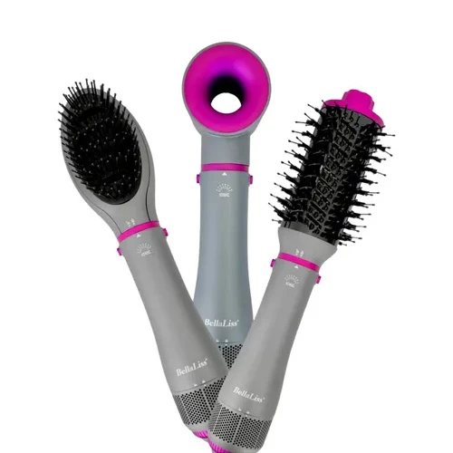 ¡Domina tu cabello con resultados profesionales en minutos! Su diseño 5 en 1 permite alisar, rizar, dar volumen, secar y desenredar, eliminando el frizz y dejando un brillo natural. Ligero y fácil de manejar, su vibrante color fucsia aporta estilo y diversión, ideal para quienes buscan practicidad y múltiples funciones en un solo dispositivo. Perfecto para crear peinados versátiles sin esfuerzo. ¡Inclúyelo en tu rutina y presume un cabello siempre impecable y estilizado!