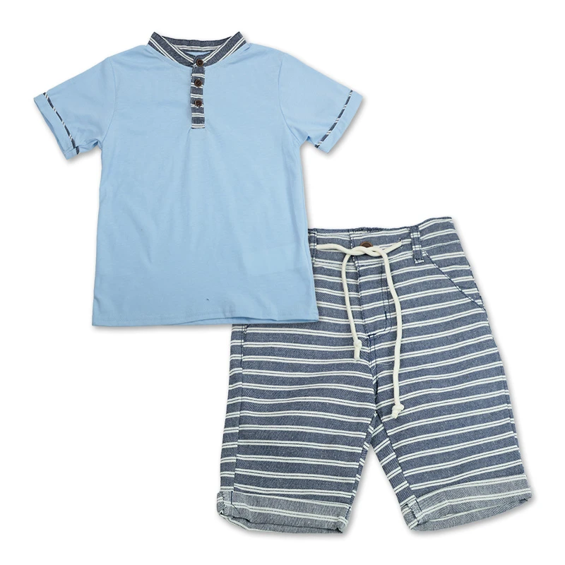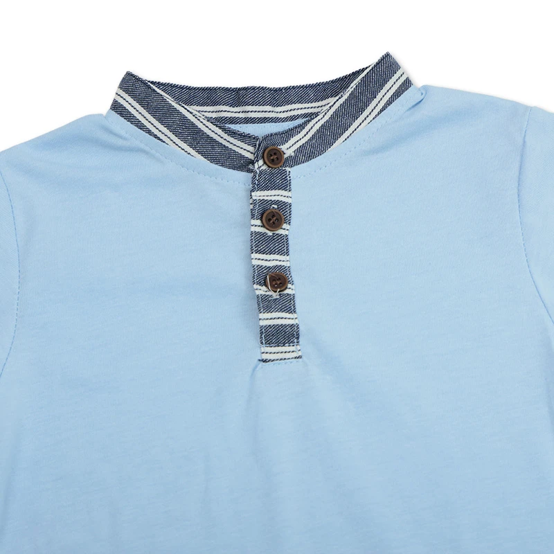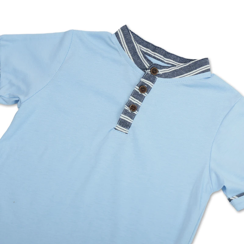 Vestirlo se vuelve sencillo con este conjunto práctico y cómodo. Su diseño moderno aporta un toque especial, mientras cada detalle está pensado para acompañarlo durante todo el día. Ideal para paseos o reuniones familiares. Una elección que suma tranquilidad y estilo. DETALLES ADICIONALES:Color: azul Talla: 2, 4, 6 y 8 Estilo: casual Diseño: cuello mandarín, mangas cortas con diseño de rayas y pantalón de rayas con bolsillos adelante, pretina elástica y cordón para ajustar Material: Camisa: 60% algodón y 40% poliéster Short: 75% algodón y 25% poliéster Recomendaciones de cuidado: lavar con agua tibia, planchar a vapor a temperatura media |