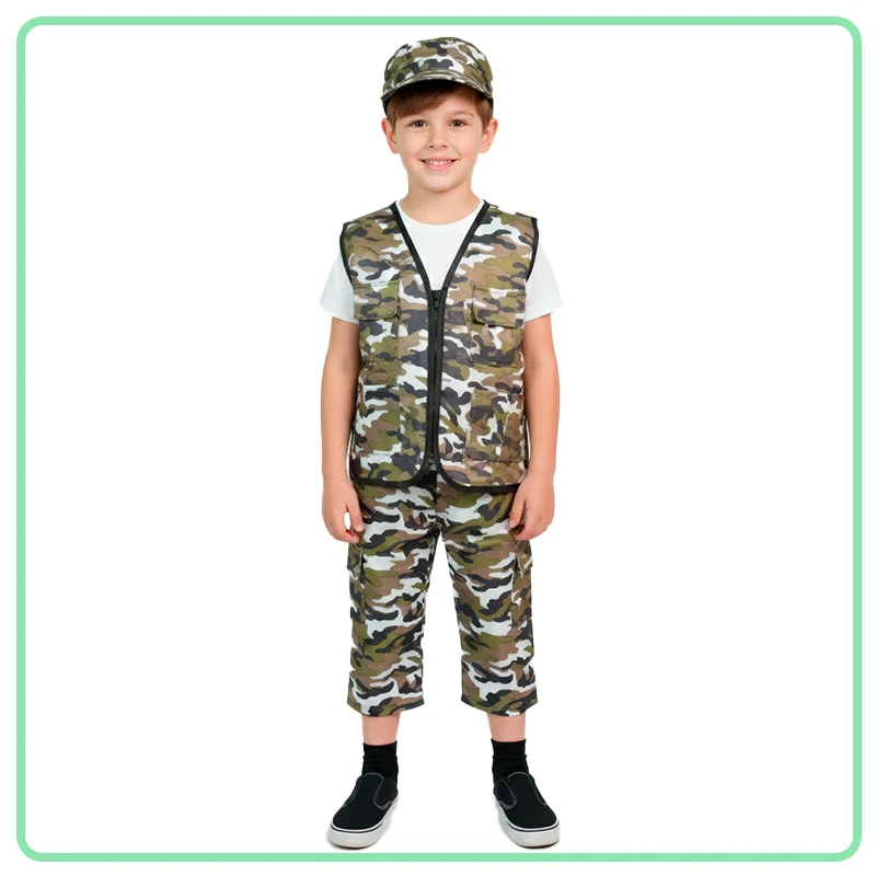 ¡Misión: diversión asegurada! Este disfraz de militar es ideal para convertir cualquier juego en una aventura llena de acción y valentía. Su uniforme con estilo camuflado incluye pantalón con elástico en la pretina, chaleco y gorra, logrando un look completo y auténtico. Además, trae accesorios para que la imaginación no tenga límites. Este disfraz destaca por su buena calidad y por lo completo que es para jugar, hacerte un personaje y sorprender. DETALLES ADICIONALES:
