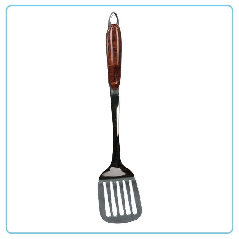 La precisión en la cocina es una realidad cuando tienes las herramientas adecuadas. Esta espátula ranurada está construida con acero inoxidable de alta resistencia, asegurando un rendimiento que jamás se verá comprometido por el calor. Su diseño te permite voltear y servir alimentos con facilidad, mientras las ranuras garantizan que el exceso de líquido o aceite se drene al instante, simplificando tu labor en la cocina para obtener resultados crujientes y pulcros. Además, incorpora ese práctico agujero para colgarla, optimizando el espacio de almacenamiento y manteniendo tu cocina organizada. Es la combinación perfecta entre un desempeño robusto y una ergonomía inteligente. Establece tu control mientras cocinas con esta pieza esencial. DETALLES ADICIONALES:Material: acero inoxidable Mango marrón |