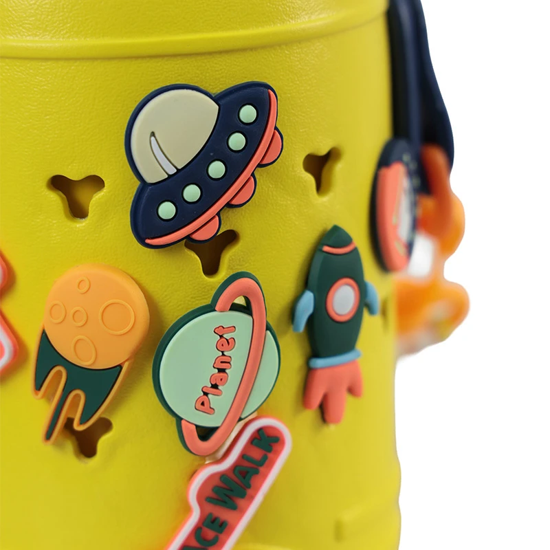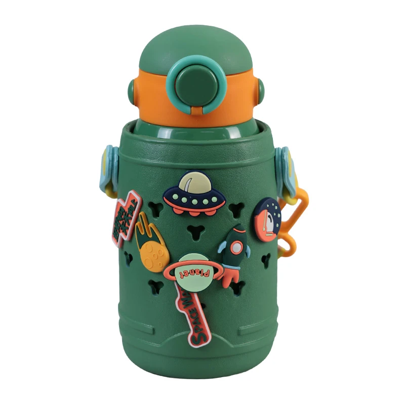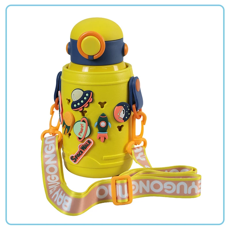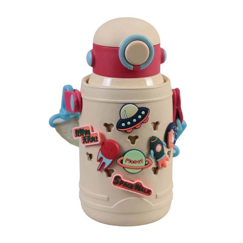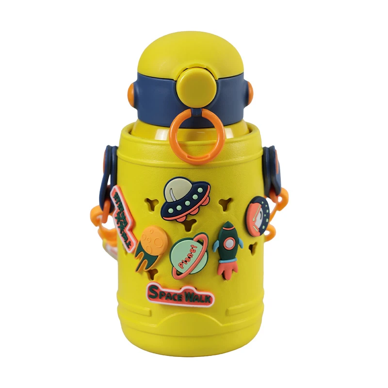 Un termo espacial de 500ml es perfecto para que los más pequeños disfruten de sus bebidas favoritas con estilo y seguridad. Viene con divertidos stickers de astros espaciales que harán volar la imaginación de tus niños. Incluye un listón para colgarlo en el cuello, haciendo que llevarlo a todas partes sea más fácil y cómodo. Además, incluye dos tapas adicionales: una tipo taza para beber con mayor facilidad y otra con mayor seguridad para evitar derrames. Ideal para mantener las bebidas frescas o calientes durante todo el día. ¡Haz que tome sus jugos como todo un aventurero espacial! DETALLES ADICIONALES: