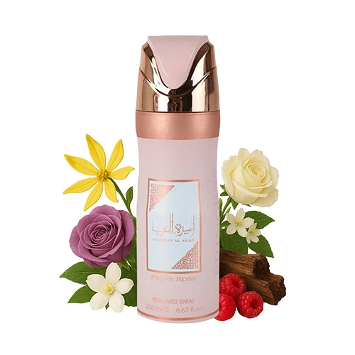 Experimenta la elegancia y la sofisticación moderna con el lujoso spray Lattafa Ameerat Al Arab Prive Rose, diseñado exclusivamente para la mujer. Este cautivador spray perfumado te mantiene fresca y segura durante todo el día gracias a su fragancia duradera. Su aroma es un equilibrio perfecto de frutas jugosas, florales exuberantes y suave almizcle, garantizando una impresión audaz, femenina y elegante que perdura. Presentado en un elegante frasco, es la opción ideal para tu uso diario, salidas especiales o como un regalo lujoso para cualquier celebración. Date un capricho o regala sofisticación. Notas principales: