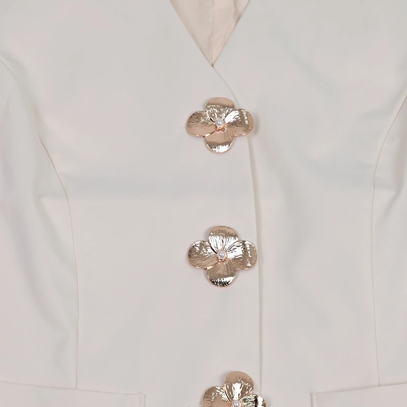 Una pieza pensada para resaltar la elegancia con un estilo contemporáneo, ideal para ocasiones especiales o para elevar conjuntos del día a día. Su estructura ligera permite usarlo cómodamente durante jornadas prolongadas. El diseño combina líneas limpias con detalles decorativos que lo hacen destacar, como los botones dorados y el corte asimétrico. El material suave y resistente mantiene su forma y facilita su cuidado, conservando una apariencia impecable. DETALLES ADICIONALES:
