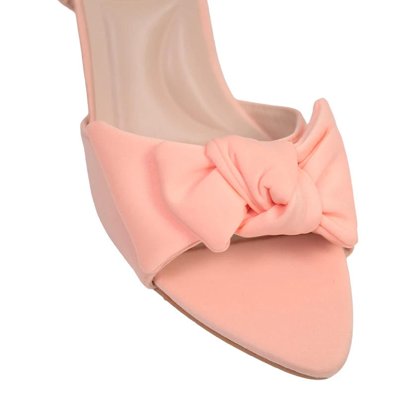 El delicado detalle del lazo frontal convierte estas sandalias en una pieza romántica y sofisticada que realza y estiliza. Su acabado en popelina aporta una textura suave y diferenciada, ideal para quienes buscan un diseño que combine la elegancia clásica con un toque de originalidad. El tono nude es el aliado perfecto para alargar visualmente tus piernas, logrando una silueta armoniosa que funciona tanto en eventos formales como en salidas casuales. DETALLES ADICIONALES: